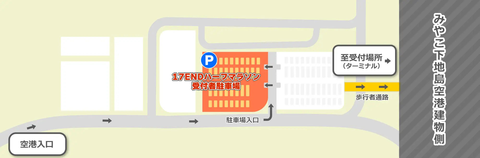 選手受付場所:下地島空港内チェックイン棟チェックインカウンター横